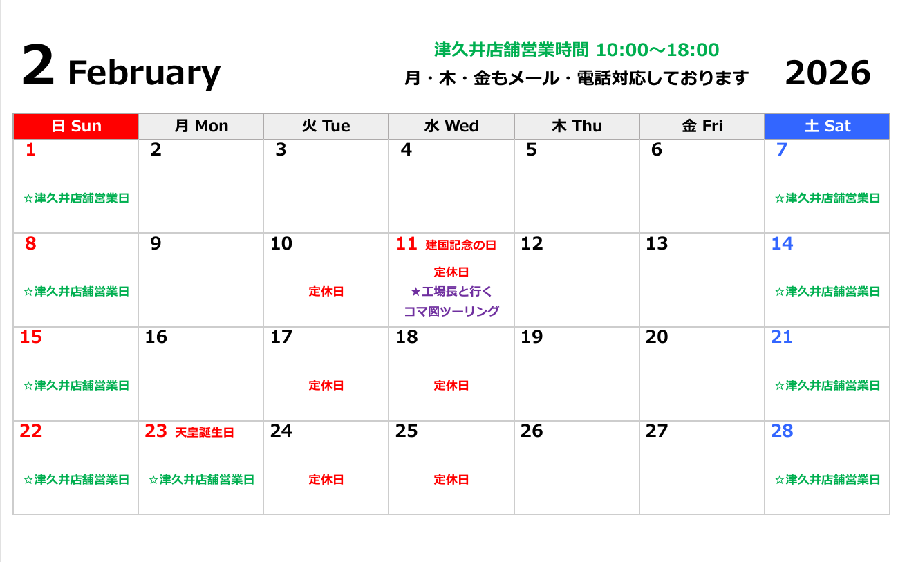 津久井店舗カレンダー
