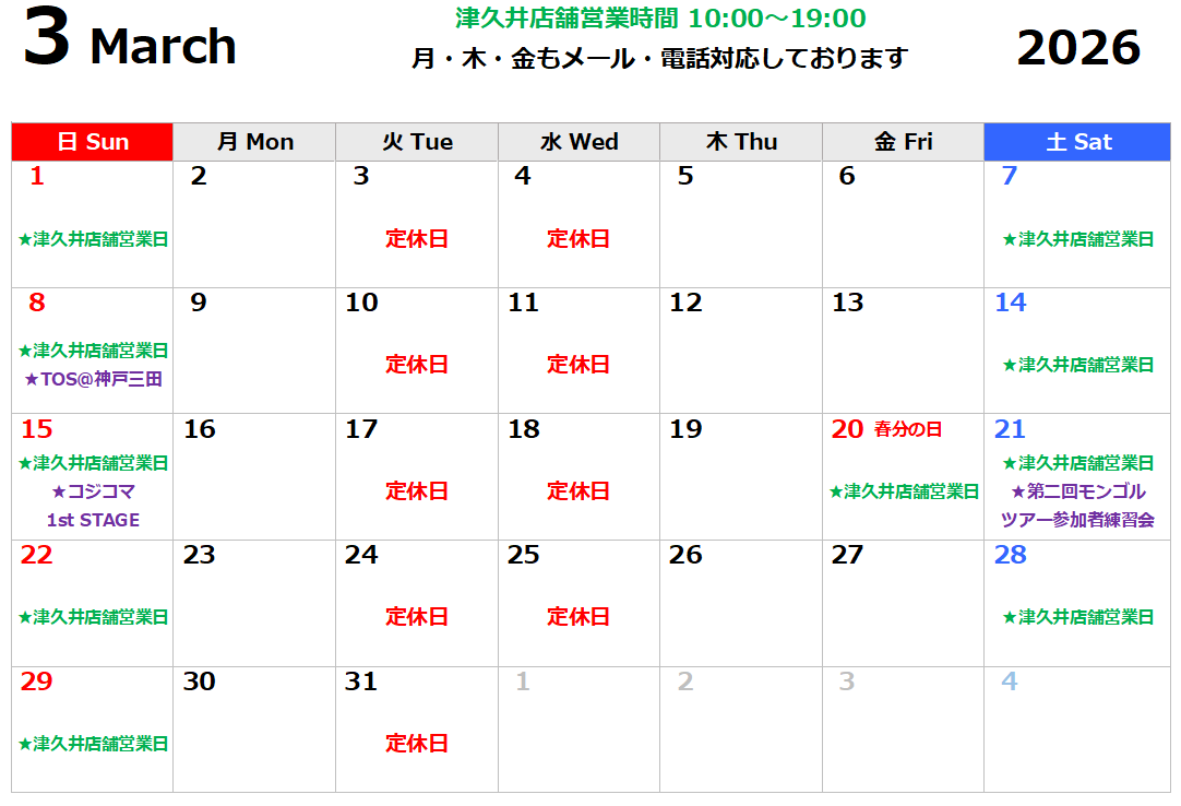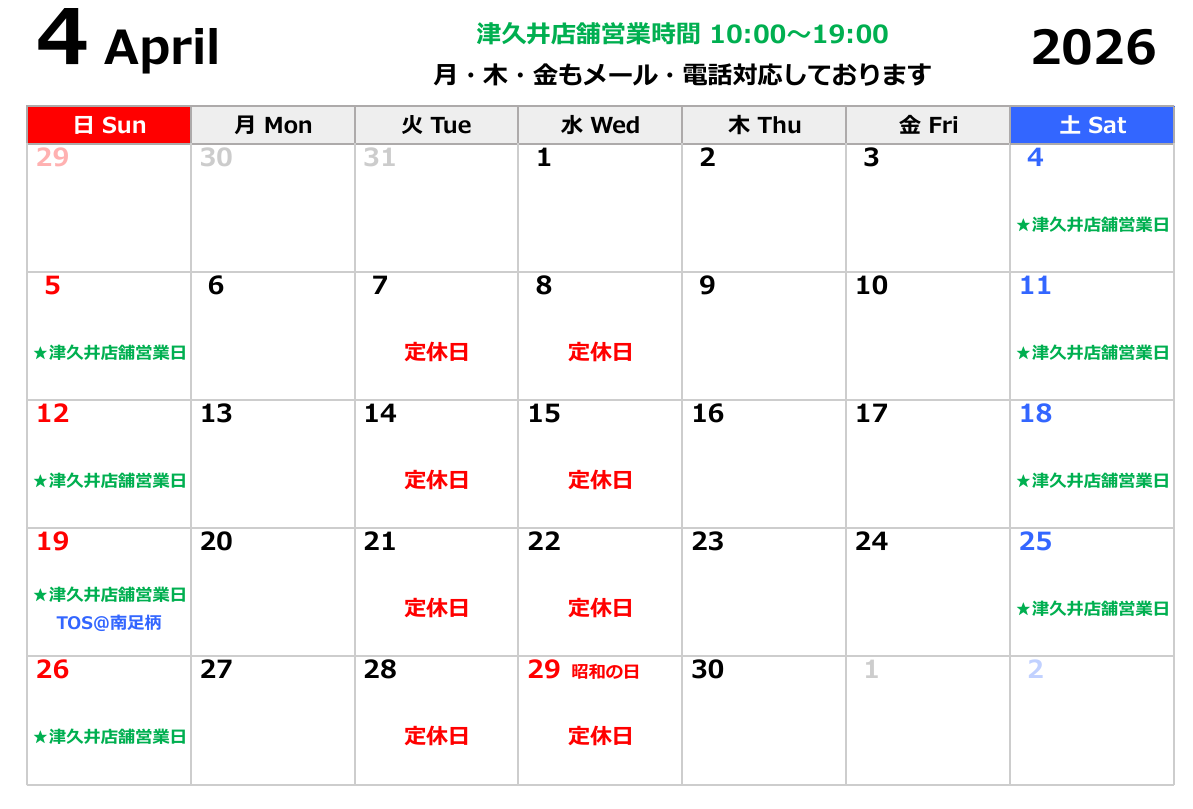 津久井店舗カレンダー