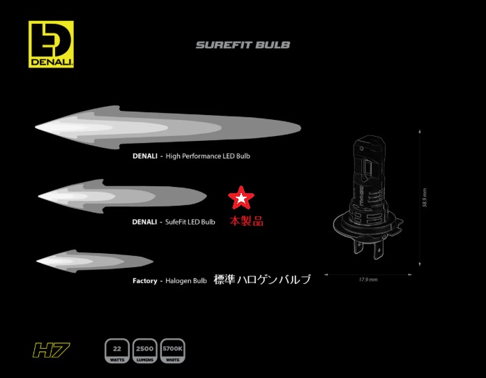 DENALI LED Bulb「SureFit」【H7】(1個)