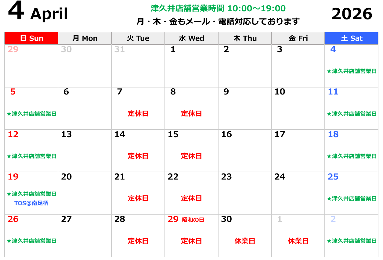 津久井店舗カレンダー