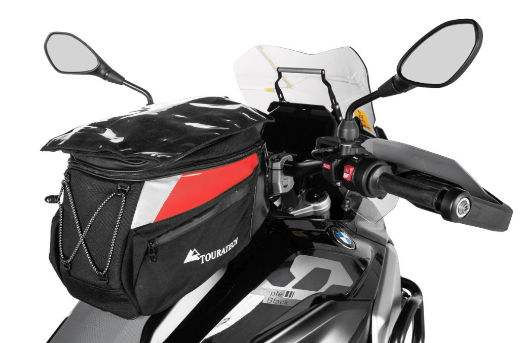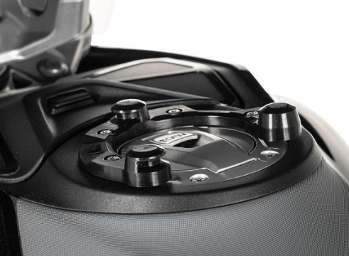 新しいTMACSクイックリリースシステムにより、新しいタンクバッグの取り扱いが簡単になります。馬蹄形のベースは、バイクを改造することなく、燃料フィラーキャップの純正ネジ穴に簡単に取り付けられます。タンクバッグはネオジム磁石とバネ式回転ロックでしっかりと固定され、素早く安定した接続を実現します。取り外しはリリースストラップを引くだけで簡単です。