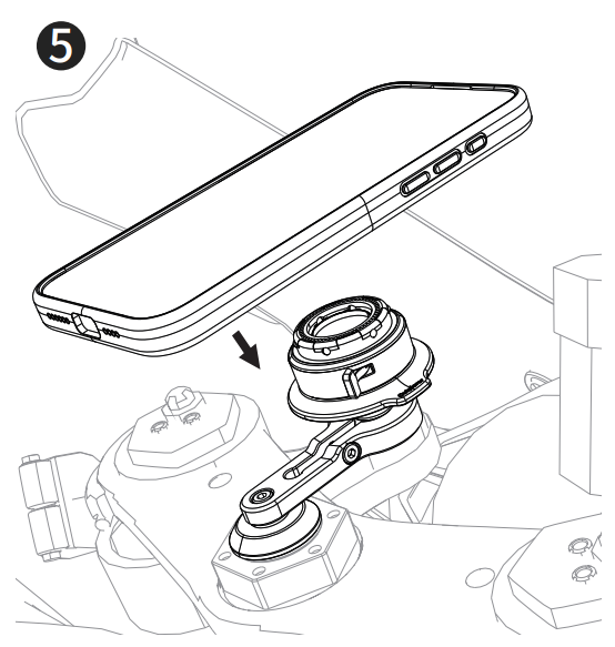 スマホを取り外す際は必ず下図の丸部分のリリースリングを十分に押し込みながら外してください。無理な力をかけると締結パーツが変形して締結力が弱まります。