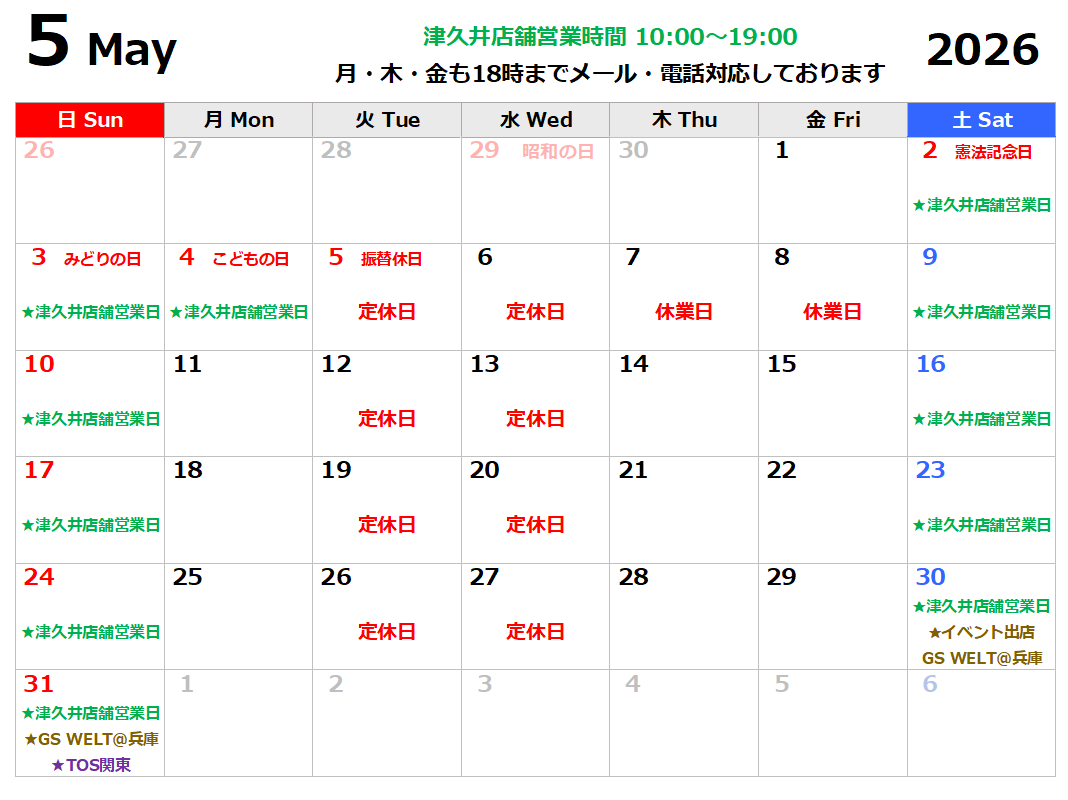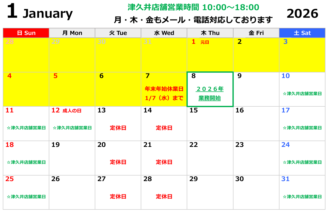 津久井店舗カレンダー